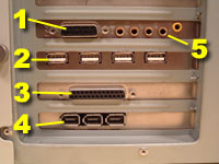 These ports come in two varieties: The older 1.1 (11Mb/s) and newer 2.0 (over 350 Mb/s). Some computers have a pair on the back and another pair on the front of the case. The sample shown at the right is actually an add-on 2.0 card on a machine that only came with slower 1.1 ports.